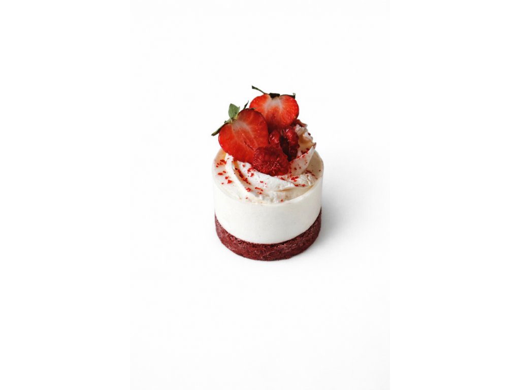 Extra čokoládový korpus s lehkým tvarohovým krém zdobený ovocem.