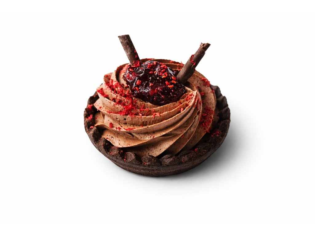 Košíček z líneckého těsta, pařížský krém, čokoláda, ovoce.